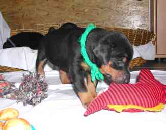 17.06.02 Im Garten herumtollen mit meinen Geschwistern ist cool. All die schönen Spielsachen finden wir spitze. Es gibt immer was neues zu sehen , zu riechen oder zu hören.