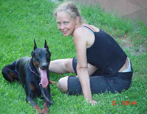 Ich hab ein neues Zuhause.Mein neues Frauli und Herrli kenne ich schon seid meiner Geburt.Die sind SUUUUUUPER!!!!Ich glaub das mein Frauli super zum arbeiten spielen und kuscheln geeignet ist.Die haben sogar schon so ein großes schwarzes Spielzeug namens Zeus für mich. Hier seht ihr das mein neues Herrli nicht einmal vor meiner Mammi Angst hat.Ist er nicht Cool. Am Hundeplatz 2003