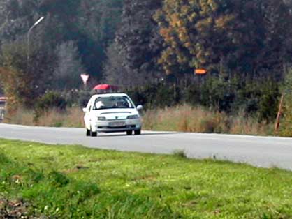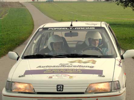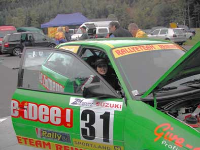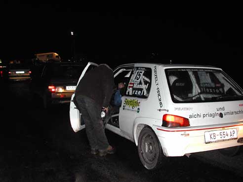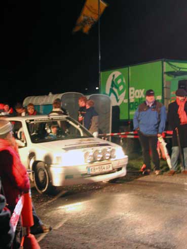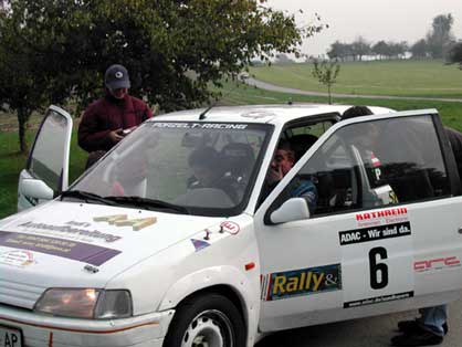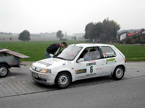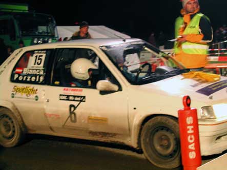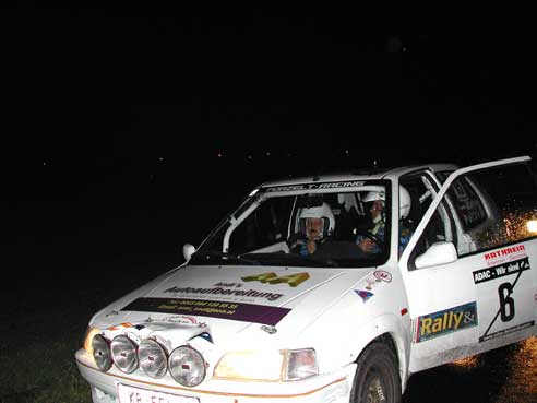 Fahrer Manuel & Bianca als Beifahrerin auf unserem ( Lumpi )Peugeot 106 Rallye nach großen Problemen mit der Lichtmaschine und dadurch besch... Sicht doch noch bester 1400ccm Pilot .
