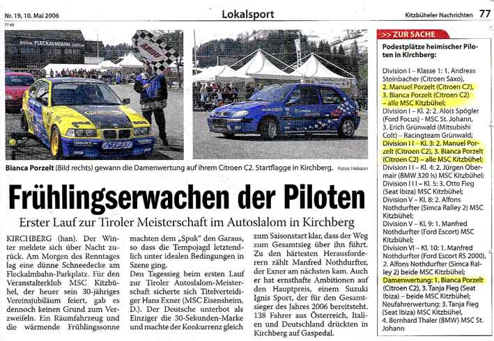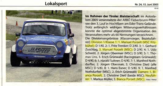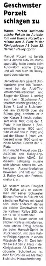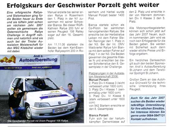 Pressemitteilungen: 2005 - 2006Motorsport - Geschwister Manuel & Bianca Porzelt