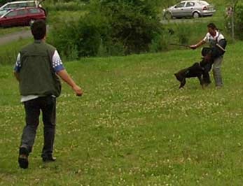 Ich hab ein neues Zuhause.Mein neues Frauli und Herrli kenne ich schon seid meiner Geburt.Die sind SUUUUUUPER!!!!Ich glaub das mein Frauli super zum arbeiten spielen und kuscheln geeignet ist.Die haben sogar schon so ein großes schwarzes Spielzeug namens Zeus für mich. Hier seht ihr das mein neues Herrli nicht einmal vor meiner Mammi Angst hat.Ist er nicht Cool. Am Hundeplatz 2003