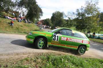 Fahrer Manuel & Bianca als Beifahrerin auf unserem ( Lumpi )Peugeot 106 Rallye nach großen Problemen mit der Lichtmaschine und dadurch besch... Sicht doch noch bester 1400ccm Pilot .