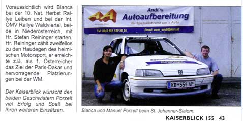 Pressemitteilungen: 2005 - 2006Motorsport - Geschwister Manuel & Bianca Porzelt