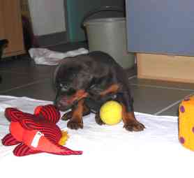 17.06.02 Im Garten herumtollen mit meinen Geschwistern ist cool. All die schönen Spielsachen finden wir spitze. Es gibt immer was neues zu sehen , zu riechen oder zu hören.