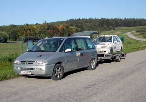 Fahrer Manuel & Bianca als Beifahrerin auf unserem ( Lumpi )Peugeot 106 Rallye nach großen Problemen mit der Lichtmaschine und dadurch besch... Sicht doch noch bester 1400ccm Pilot .